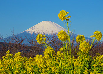 年の初めに、早咲きの菜ノ花で知られる吾妻山(公園)に登った。雲一つ無い青空の下で正月に咲く菜ノ花が雪を被った富士山と抜群の共演だ!