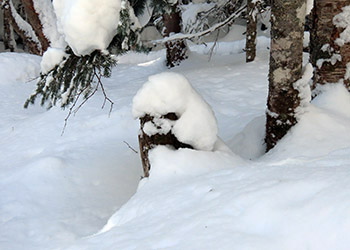 集中力が切れて座り込むと、少し離れたところから「森の妖精」が此方を見ていた。雪が積もっているだけなのだけれども、此のスマートホンを見守ってくれていたような気がした。 |