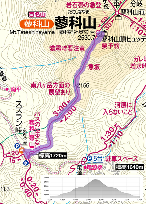 「3h30m,5.5km,555m」地図