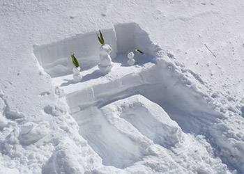ガイド(福田)さんの造った雪上トイレの見本が可愛かった。 |