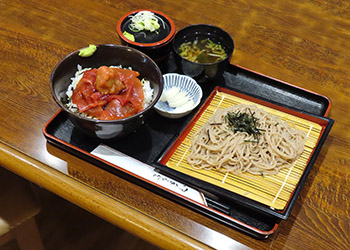 此処の‘マグロ丼’は滅茶苦茶旨い。また来たくなる味である。一緒に注文した‘ざる蕎麦’も良い。
