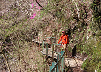 玄倉林道が通行可能とは知らず、寄大橋から雨山峠を越えてユーシンロッジに向かった。雨山橋合流手前の桟橋は立派。