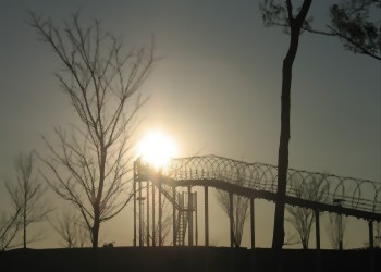![]() 2006年1月29日 蟹の形をした複合遊具の左足?にあたる渦巻き状のすべり台は、 昨年の秋頃に破損したため新しいものに取り替えられた。濃い赤色が夕陽の中で際立っていた。 |