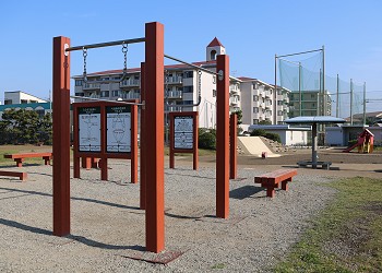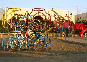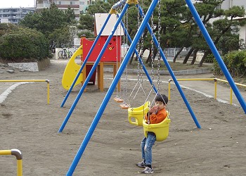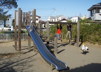 ![]() 2004年1月24日 茅ヶ崎市の東端に位置する逆L字型の公園。 「ゆうぎ広場」には、蟹の形をした遊具があって楽しい。見渡すことができる広さなので、小さな子供も安心して遊ばせられる。 |