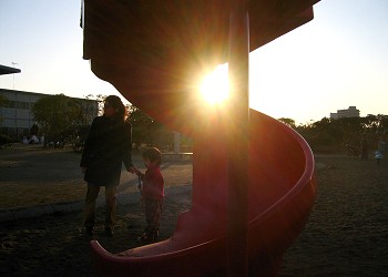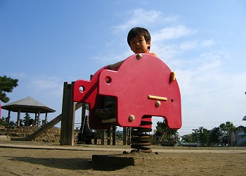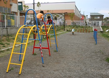 ![]() 2008年11月29日 遊具が新しく塗装され、見た目にもカラフルになった。 公園の端にあるロケット型のジャングルジムは案外登りづらく、天辺に立つのは勇気が必要だ。 |