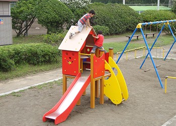 ![]() 2007年7月8日 「ゆうぎ広場」にあった“ジャングルジム”は取り壊され、新しく“家型のすべり台”が設置されていた。 幼児用の遊具なのか、お兄ちゃんには物足りない。 |