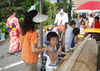 ![]() 2007年8月4日 ラチェン通りを挟んで公園の向かいにある蕎麦屋「江戸久」で、今年で2度目となる“流しそうめん”の食べ放題が行われた。 浴衣を着ていくと、サービスがあるらしい。 |