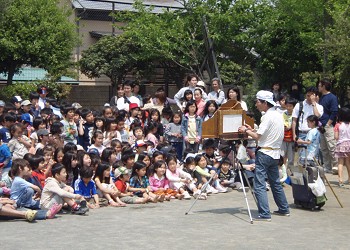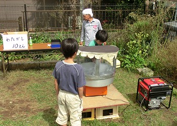 ![]() 2011年9月23日 「秋分の日」に秋祭りが行われ、小さな公園(広場)は賑わいを見せていた。 綿飴(わたあめ)作りや、文房具のリサイクルに子供達が殺到しいてた。 |