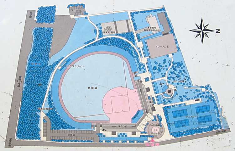 ![]() 2004年6月27日 茅ヶ崎市を縦走する県道404号の西側にある公園。県道の反対には“鶴田東公園”がある。 公園には木製の遊具やロープウェイが設置されていて、楽しく遊べる。 |