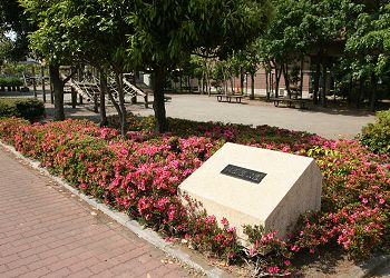 ![]() 2004年7月17日 鉄砲通り沿いにある平和町交番の隣にある公園で、ブランコがいっぱいある。 交番との境には、市川団十郎の記念碑である“団十郎山の碑”がある。 |