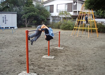 ![]() 2008年4月20日 「フレスポ茅ヶ崎」の隣にある公園。買い物の序でに遊んでみようか。 取りわけて目をひく“波形の雲梯”のほかに、鉄棒やすべり台といった遊具がある。 |