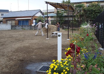 ![]() 2008年10月19日 開園に向けて現在整備が進められている。 敷地が綺麗に整地されて、周囲にはフェンスが造られた。また、水道やベンチが設置され、花壇には花が植えられていた。 |