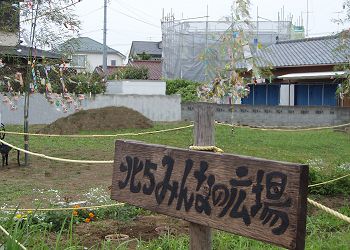![]() 2008年6月28日 東海岸北五丁目にできた新しい広場。今年秋から本格的に整備が始まる予定。 七夕に向けて笹竹に短冊を飾るイベントが行われ、近所の子供達が集まっていた。 |