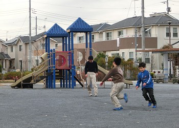 ![]() 2004年12月28日 澄み切った冬空でかなり寒かったが、子供達は元気に追い駆けっこをしていた。 公園にある“ターザンロープ”は、木で出来ていて結構スピードが出る。 |