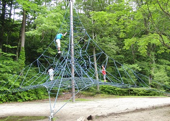 「ザイルクライミング」は人気の高い遊具。ネットの間をくぐり抜け、楽しそうに追い駆けっこをしていた…でかい兄ちゃんは一寸不利! |