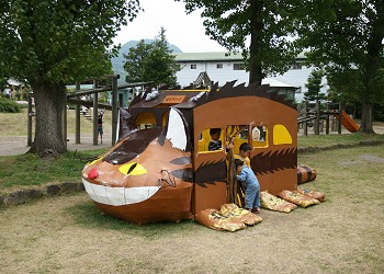 バラの花は4分咲きで、色とりどりの花と香りを楽しむことができた。 「遊戯広場」には“ねこバス”も登場! |
