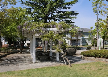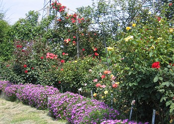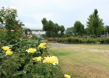 「多目的広場」の周りは、薔薇の花壇が造られ、薔薇の季節には薔薇に囲まれる。 |