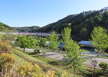 ‘端午の節句’が近づき、谷間の空には約500匹の鯉のぼりが泳ぎ壮観であった。 |