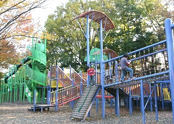 ![]() 2005年10月2日 此処の複合遊具(2001年10月30日改装)はとても巨大で面白いが、小さい子がいっぱい遊んでいるので、 大きいお兄ちゃんにとっては寸遊びにくいかも・・・ |