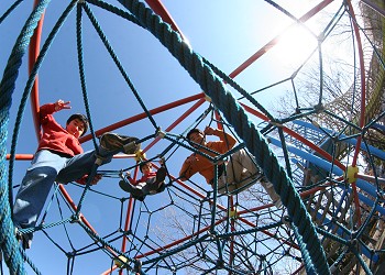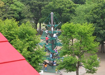 木の枝にネットを張り巡らせたような形で、まるで木に登っている様だ。子供達は、元気一杯に頂上を目指していた。 |