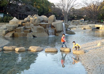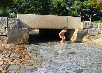 そこに架かる橋の下は、“水のトンネル”となっていて、子供達は楽しそうに潜り抜けていた。 |