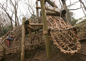 南東の斜面には、20ポイントのアスレチックが造られていおり、子供達には“ヘビのアスレチック”の人気がある。 |