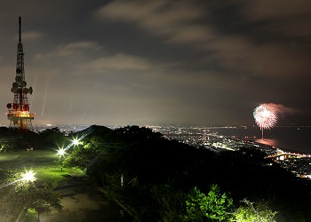 2013年8月23日 (solo) 「第63回湘南ひらつか花火大会」の花火が打ち上げられ、眼下に広がる夜景に溶け込んでいた。