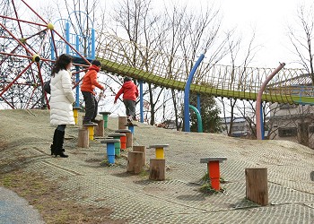 2008年2月10日 「遊具広場」には、斜面を利用して‘飛び石’様の遊具が置かれている。
