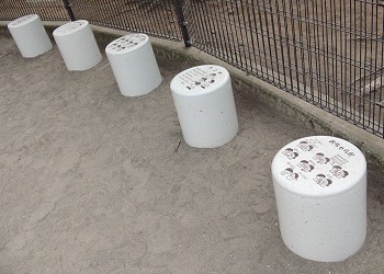2011年2月6日 幼児用の柵で囲まれた広場の端には、“おちゃらか”とか“かごめ”などの「童歌」が描かれた丸石の椅子が五つあり、