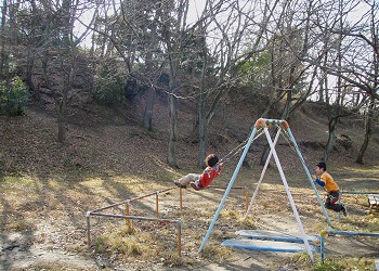 殆どが小高い山と林であるが、一部は広場になっていて、ブランコやすべり台といった簡単な遊具が置いてある。 |