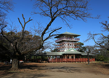 緑地内にあって、標高は84m程しかないが、展望台からの眺めは良い。 |