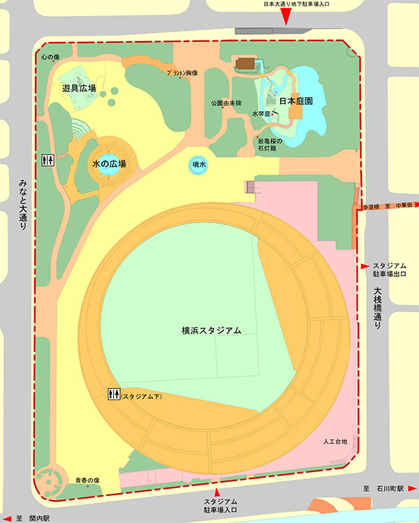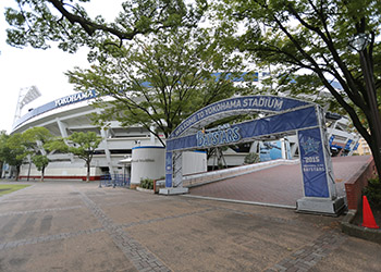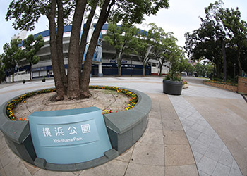 公園内にある横浜スタジアムは、日本プロ野球・横浜DeNAベイスターズの本拠地(専用球場)となっている。 |