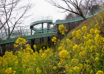 ここは‘早咲きの菜の花’が有名で、一月中頃より春の訪れを告げる黄色い花が楽しめる。 |
