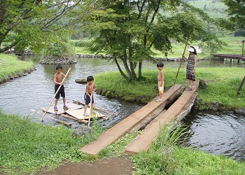 富士山こどもの国 ⇒「水の国」にある筏(いかだ)作り
