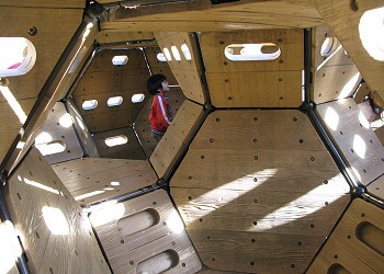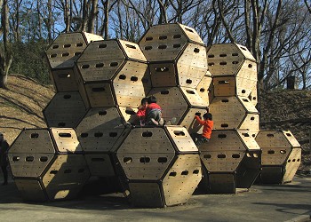 14面体の箱を積み重ねた遊具。中は空洞になっていて、迷路のような構造になっている。