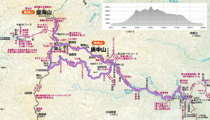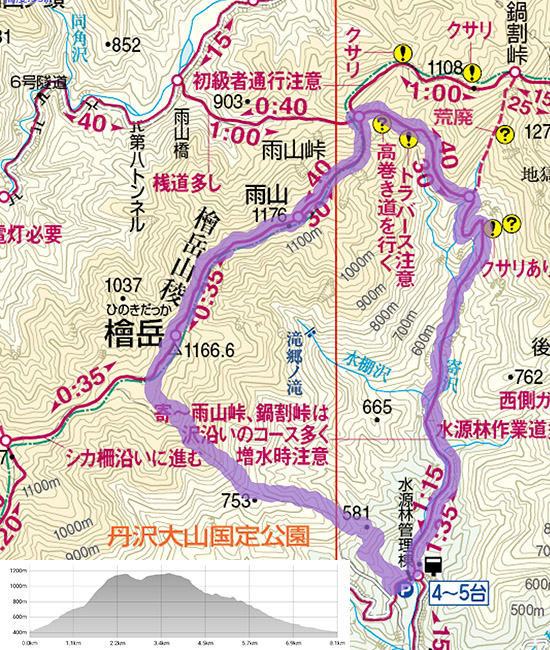 鍋割峠を越えて鍋割北尾根巡り地図