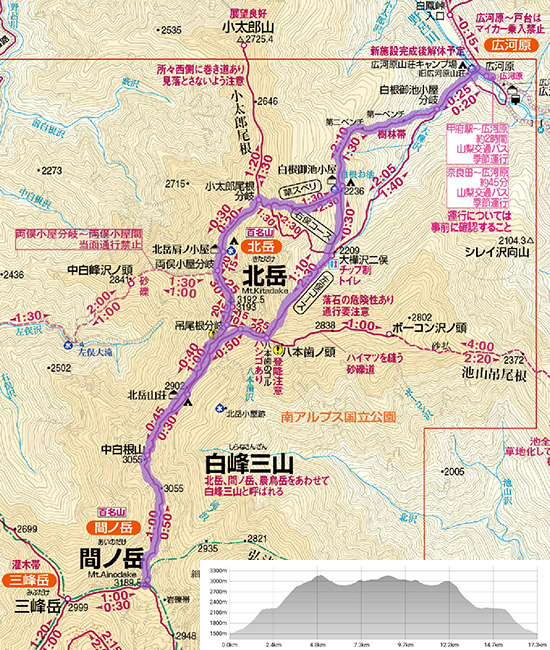 鳳凰山百名山/6時間5分+8時間5分 青木鉱泉→地蔵岳(泊)→観音岳→薬師岳 |