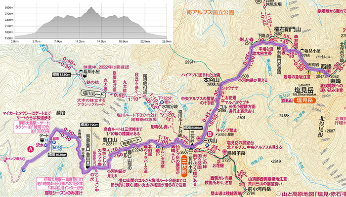 開山日に登った越後駒ヶ岳地図